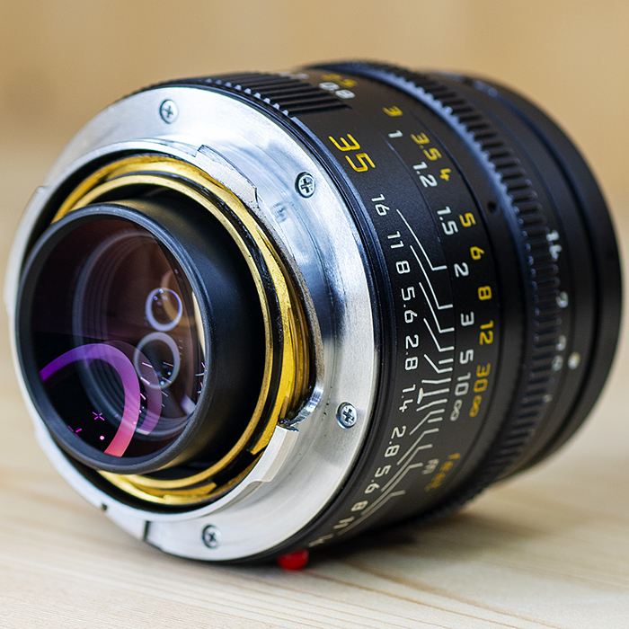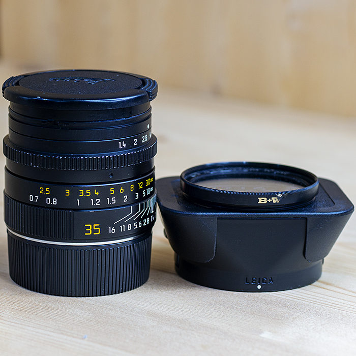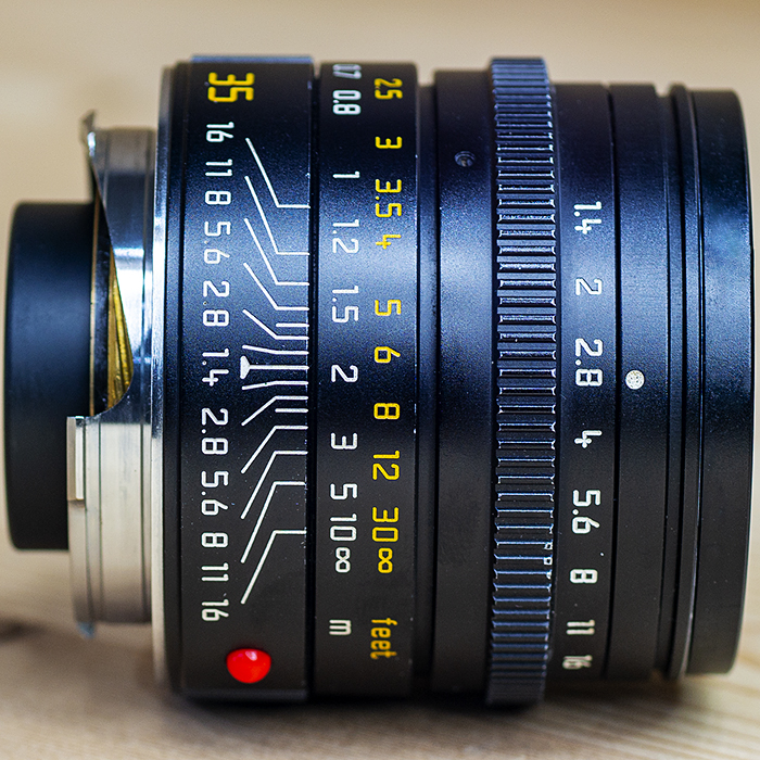 원 스톱 줌 속도와 교환하여 크기, 무게 및 가격을 기꺼이 교환하려는 경우이 렌즈를 사용하십시오. 이 35mm f / 1.4는 내게 귀찮은 뷰 파인더의 오른쪽 아래 모서리를 막을 것이고 실제로 f / 1.4를 사용하면 매우 어두운 구석이 있습니다.
