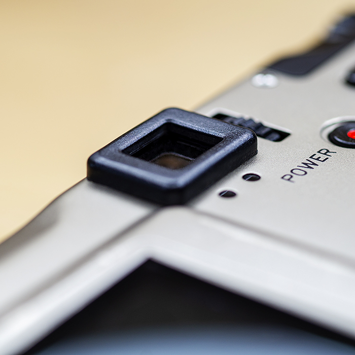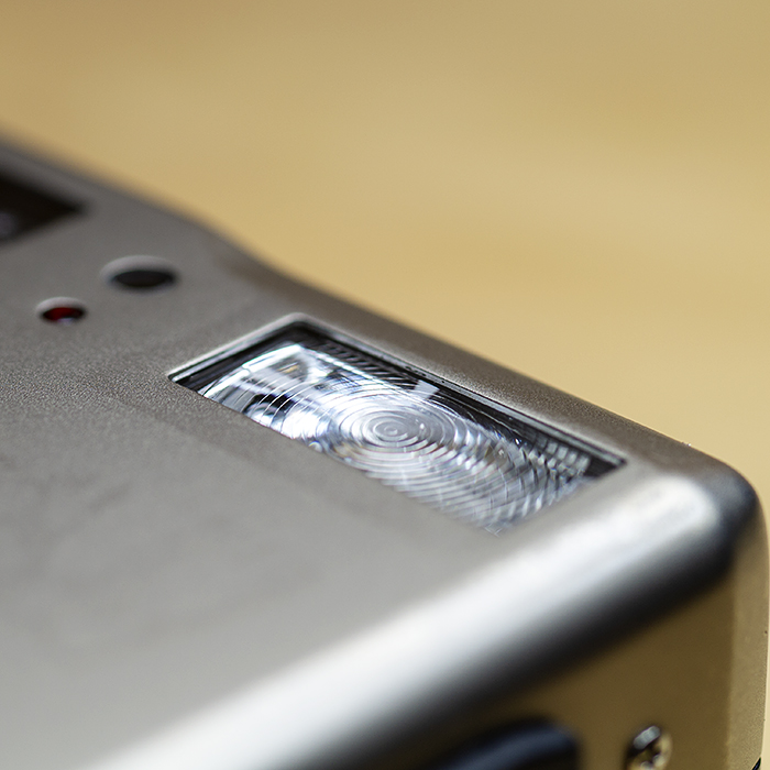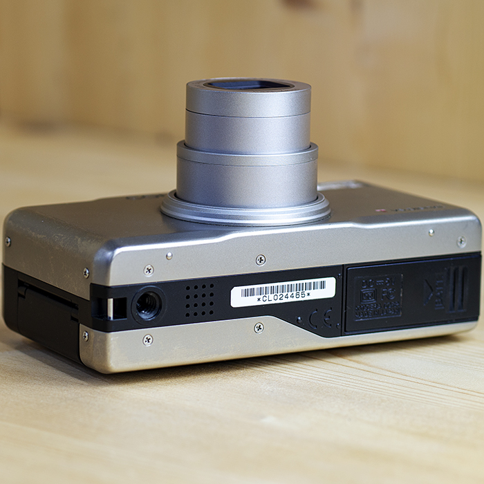 먼저 카메라의 디자인은 직사각형에 가까운 금속바디로 단순하면서도 깔끔한 느낌을 보여줍니다. 전체적으로 캐논의 IXUS-V 시리즈나 교세라의 파인캠 시리즈와 흡사한 분위기를 보여주고 있지만 좀 더 간단하게 면모를 볼 수 있습니다. 전면 중앙의 렌즈나 플래쉬의 위치, 뷰 파인더의 위치 등도 컴팩트형 디지탈 카메라에서 흔히 볼 수 있는 구조입니다.