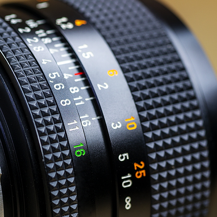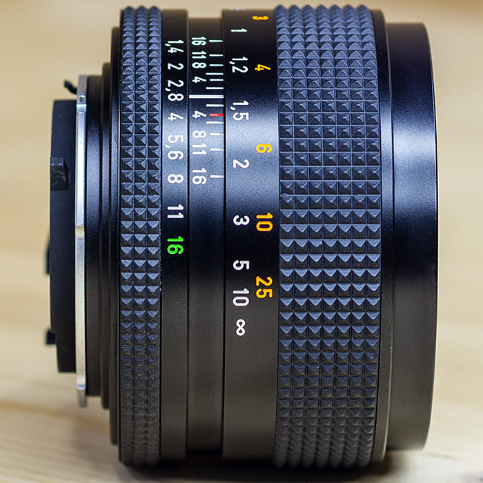 Planar T * 50mm f / 1.4 등을 맞댄. 느린 f / 1.7 사촌과 마찬가지로, Carl Zeiss Planar 50mm f / 1.4 (Contax / Yashica 마운트 용)는 AE 및 MM 형식으로 제조되었습니다