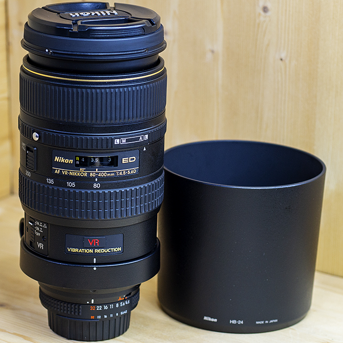 니콘 Nikon AF NIKKOR 80-400mm F4.5-5.6D ED VR 후드.케이스/98%