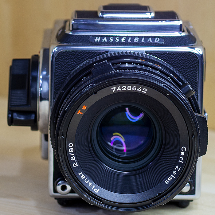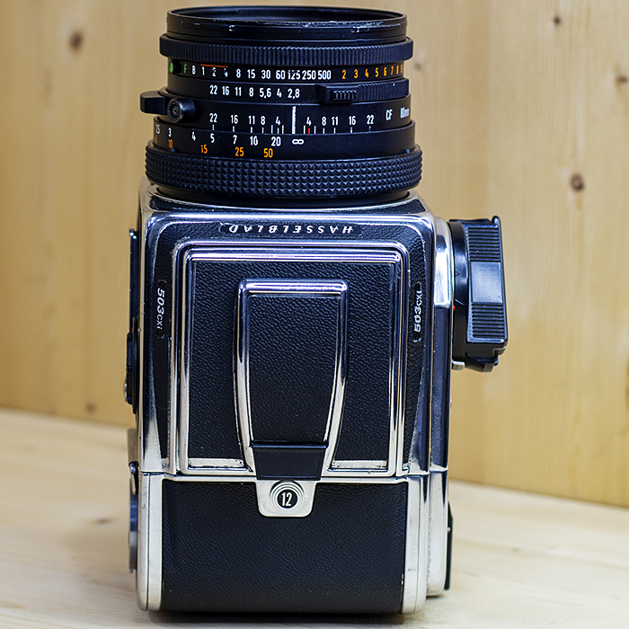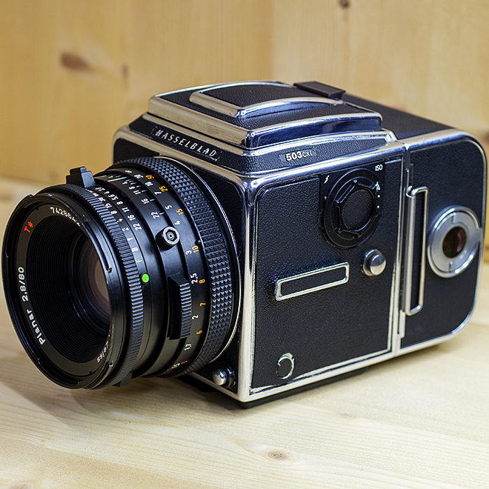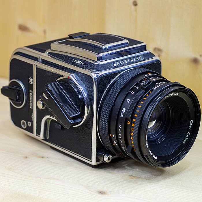 Hasselblad 503CXi는 기계식 매체 형식의 일안 반사 식 카메라입니다. 교체 가능한 렌즈, 뷰 파인더 및 필름 매거진을 액세서리로 사용할 수 있습니다.