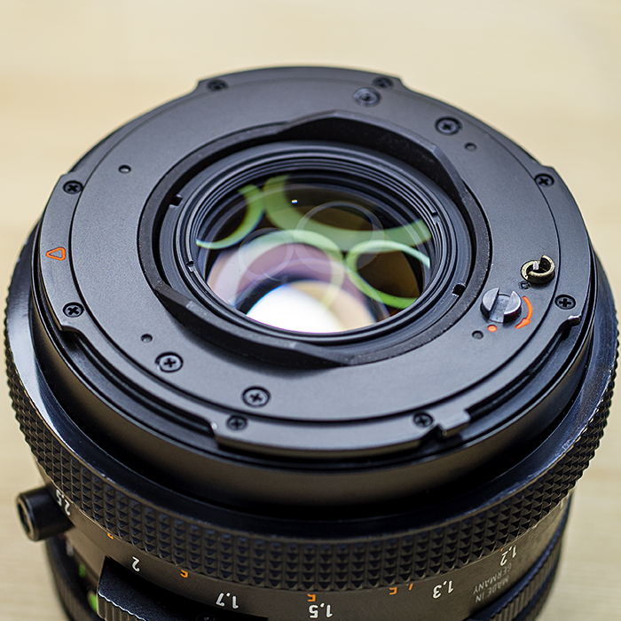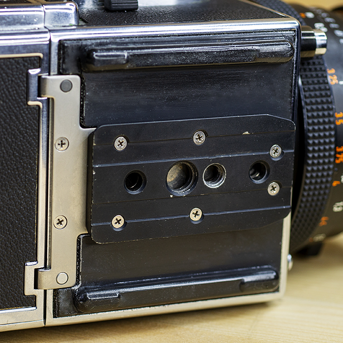 카메라 본체 뒷면에 장착 할 수있는 액세서리 마스크는 2 1/4 (6×6) 정사각형 또는 6 x 4.5cm 수평 또는 수직 포맷과 파노라마 마스크 (27x55mm)를 선택할 수 있습니다.