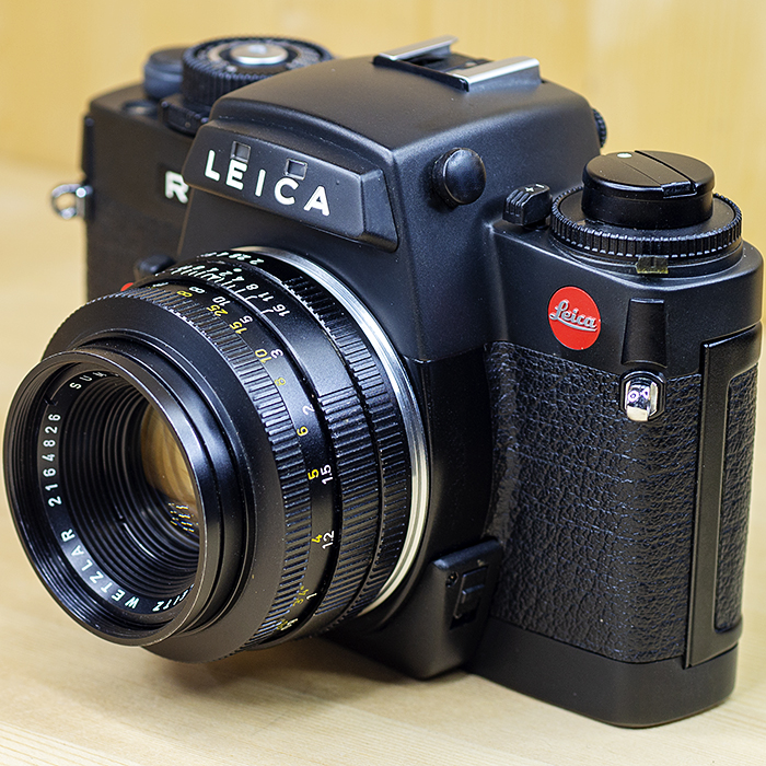 1992년∼. 라이카 R5의 대체모델로 1992년 포토키나에서 소개되었다. 노출모드, 측광, 뷰파인더가 R5와 비슷하고 TTL 플래시기능과 많은 부분이 개선되었다. R5의 기능 외에도 SCA351과 551 플래시 어댑터를 조합시켜 주광과 보조광 플래시용의 TTL 플래시조절 시스템을 사용한다. 평균측광과 부분측광의 플래시미터링. 자동 프로그램모드에서 주광플래시와 보조광플래시의 자동 스위치전환은 주변광에 의해 변한다. ISO 25∼5000까지의 DX코드(수동세팅에서는 ISO 6∼12800). 노출계감도를 1EV 저휘도까지 증가시켰다. 측광메모리는 손가락으로 셔터릴리즈 버턴을 누르고 있는 한 작동한다. 노출보정범위를 ±3EV까지 증가시