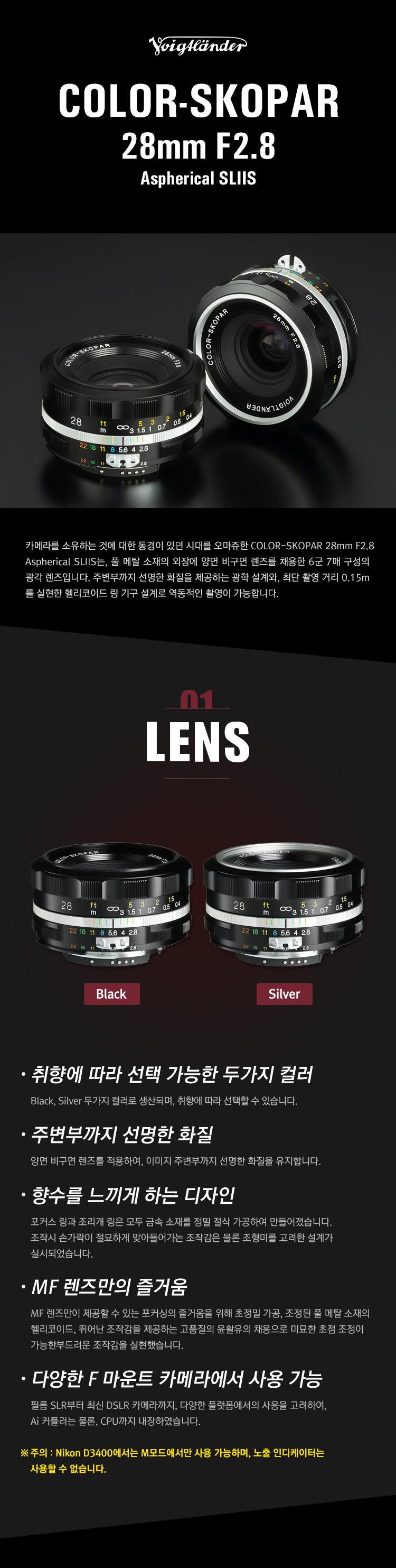 보이그랜더 Voigtlander COLOR-SKOPAR 28mm F2.8 Aspherical SLIIS for Nikon F-Mount Silver (썬포토정품)