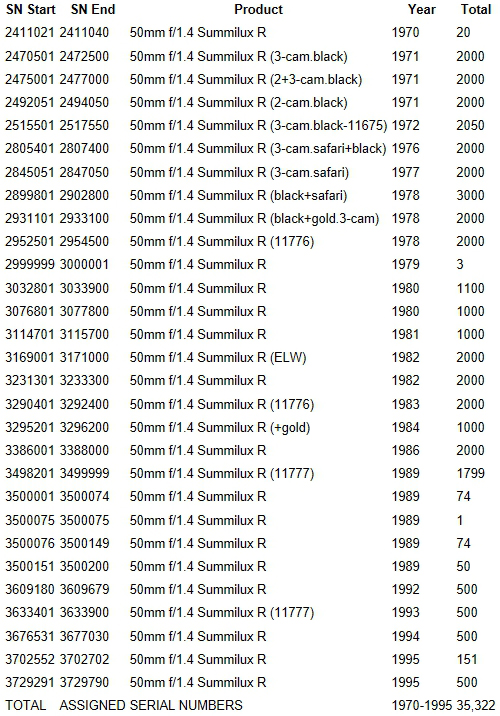 SUMMILUX-R 1:1.4/50 LEITZ WETZLAR 3XXXXXX