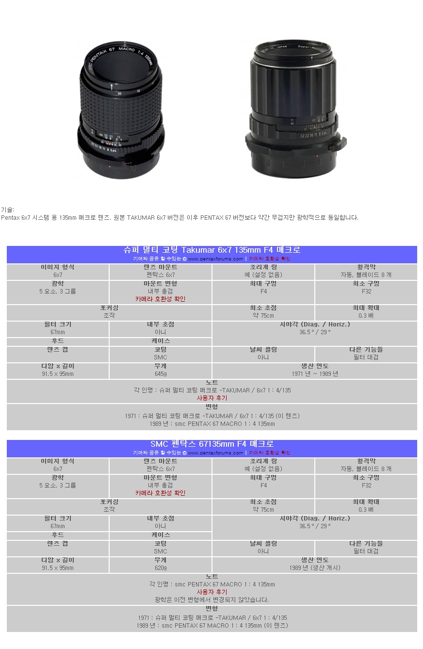 펜탁스67용 PENTAX 67 MACRO SMC 135mm F4 매크로/97%