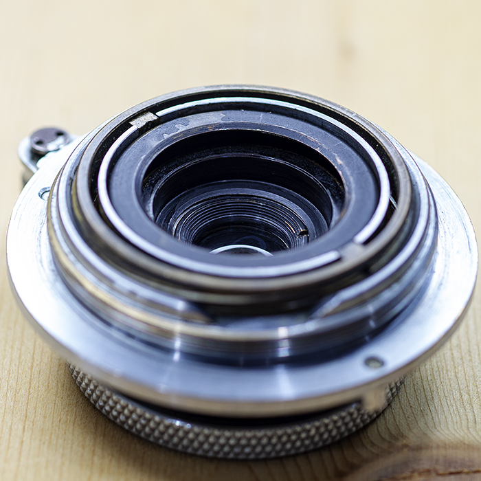 촬영 준비를 할 때 렌즈 배럴의 나사를 풀 필요가 없습니다 ( 50mm Elmar 렌즈 와 달리
